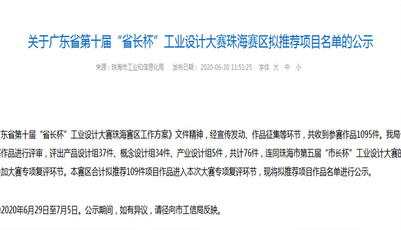 产品-资讯-2020第十届广东省“省长杯”工业设计大赛珠海赛区拟推荐项目名单