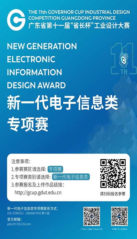 根据《广东省“省长杯”工业设计大赛组委会关于印发第十一届“省长杯”工业设计大赛及广东设计周工作方案的通知》(粤工信生产合作函〔2022〕4号)要求和广东省工业和信息化厅工作部署,由广东省工业和信息化厅主办,广东省人工智能产业协会等单位承办的第十一届“省长杯”工业设计大赛新一代电子信息类专项赛向全球发起作品征集。