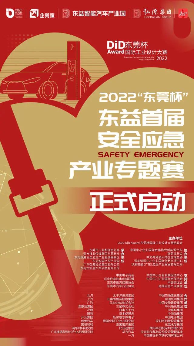 该比赛是2022 DiD Award 东莞杯国际工业设计大赛组委会主办,东莞市工信局、南方报业传媒集团东莞分社、东莞塘厦安全应急产业发展集聚区、东益智能汽车产业园、广东弘源投资集团有限公司、东莞市凯发汽车科技有限公司承办,中国中小企业国际合作协会新能源汽车服务业分会、中交粤港澳大湾区区域总部、深圳湾区中小企业国际创新交流中心、华源安能(广东)应急产业发展有限公司协办,以安全应急产业赛事为依托,以赛促创、以赛引才、以赛兴业,推动安全应急产业的发展。