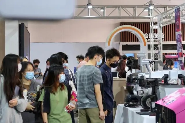 广东工业大学艺术与设计学院的学生正在参观