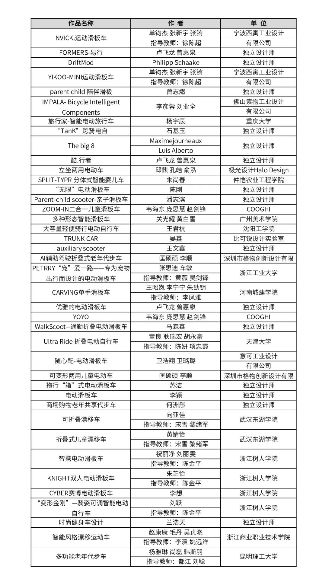 - SHORTLISTED NOMINEES入围作品名单“飞剑”杯健康杯壶设计赛道