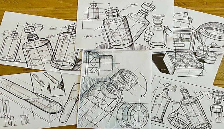 - 从圆到圆的瓶腰过渡是容易的,从方到圆的不规则图形过渡却有很大的难度,我们在产品造型上耗时30天,终于为新派凉茶打造出晶莹的「碎冰」造型。