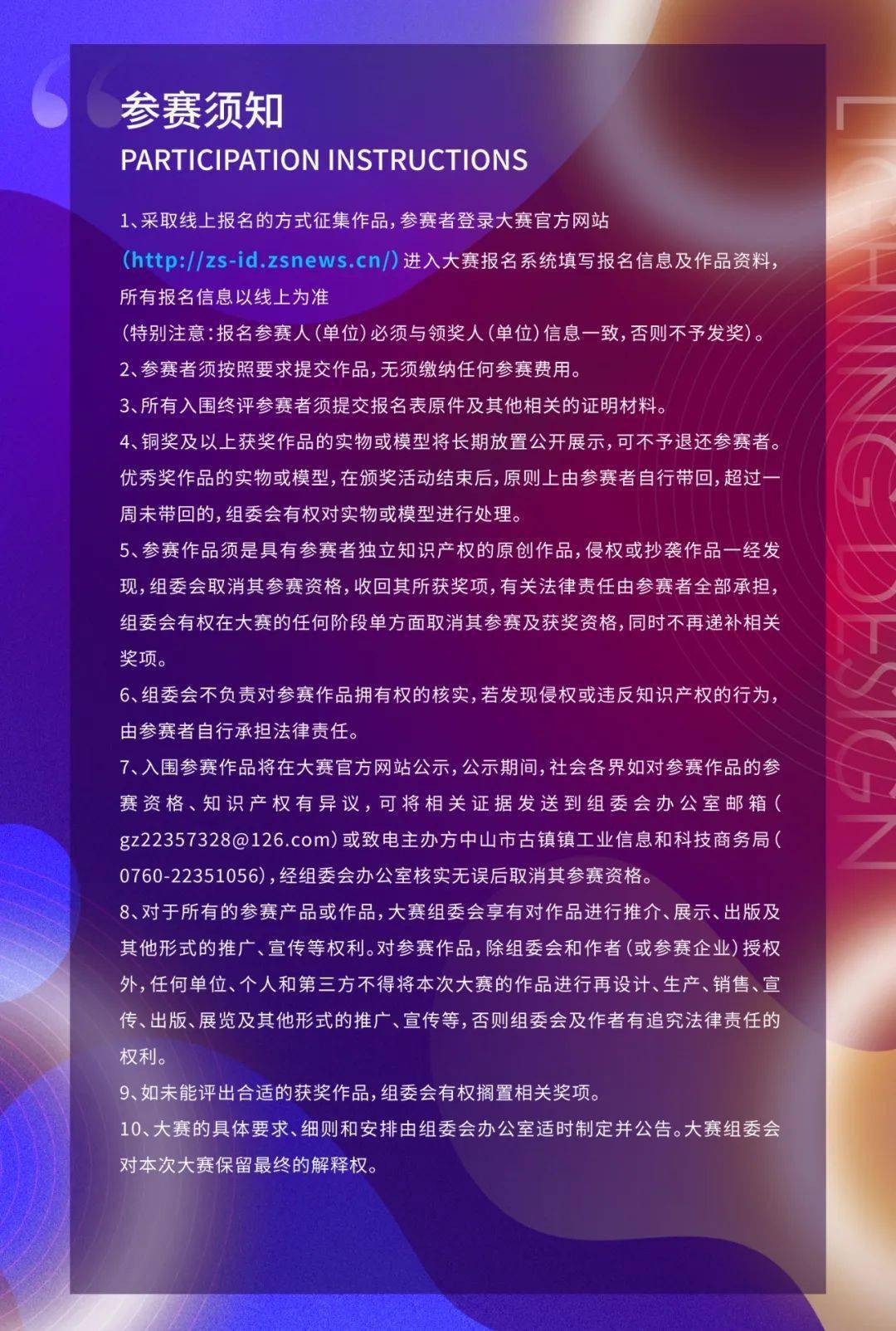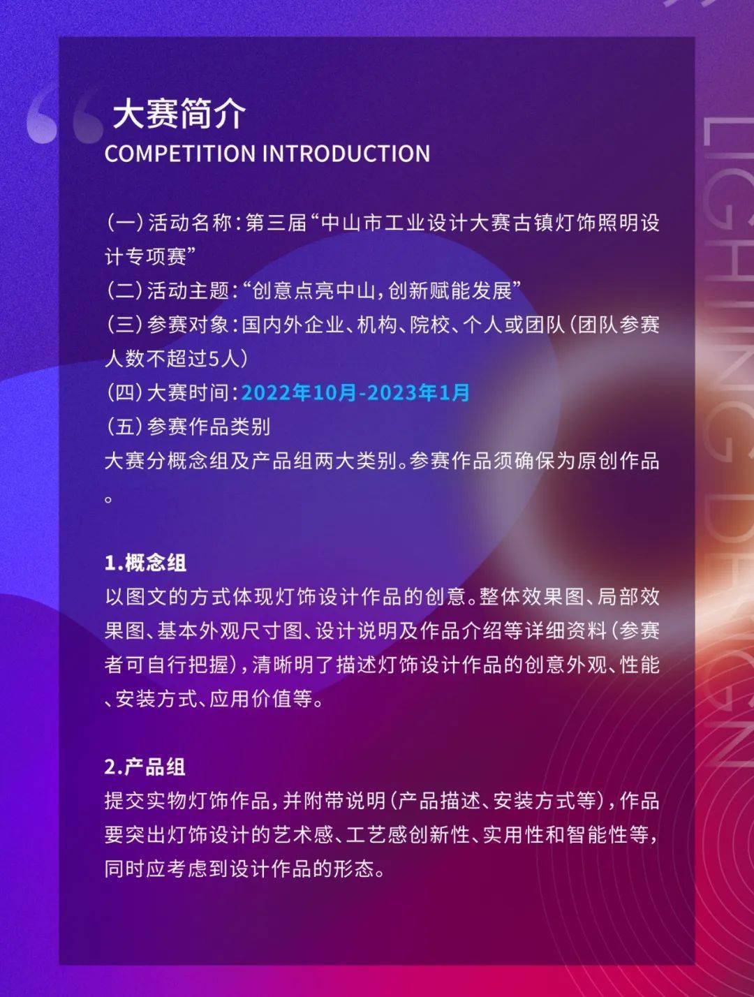 设计比赛-中山市工业设计大赛2022古镇灯饰照明设计专项赛 截至2023.12.30 发布于2022年11月22日2022年11月22日 作者:游客 中山市工业设计大赛2022古镇灯饰照明设计专项赛 截至2023.12.30 声明:此文是出于传递更多信息之目的。若有来源标注错误或侵犯了您的合法权益,请作者持权属证明与本网联系,您可通过邮箱与我们取得联系,邮箱地址529274506@qq.com 媒体-资讯-2022 DiD Award 东莞杯国际工业设计大赛“东莞礼物”潮玩产业专题赛 广东省长杯工业设计大赛 山东省工业设计中心 淘宝店铺 Adobe将对上万种颜色收费 关注我们了解更多动态消